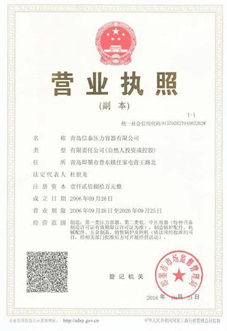 青島信泰壓力容器有限公司成立于2006年,由山東質量技術監督局頒發的D1D2類壓力容器設計許可證和制造許可證;并通過了國家質量管理體系9001認證證書;青島信泰主營的產品有:各類壓力容器,儲氣罐:空氣儲罐,蒸汽儲罐,氧氣儲罐,及各類不銹鋼儲氣罐、油罐等。